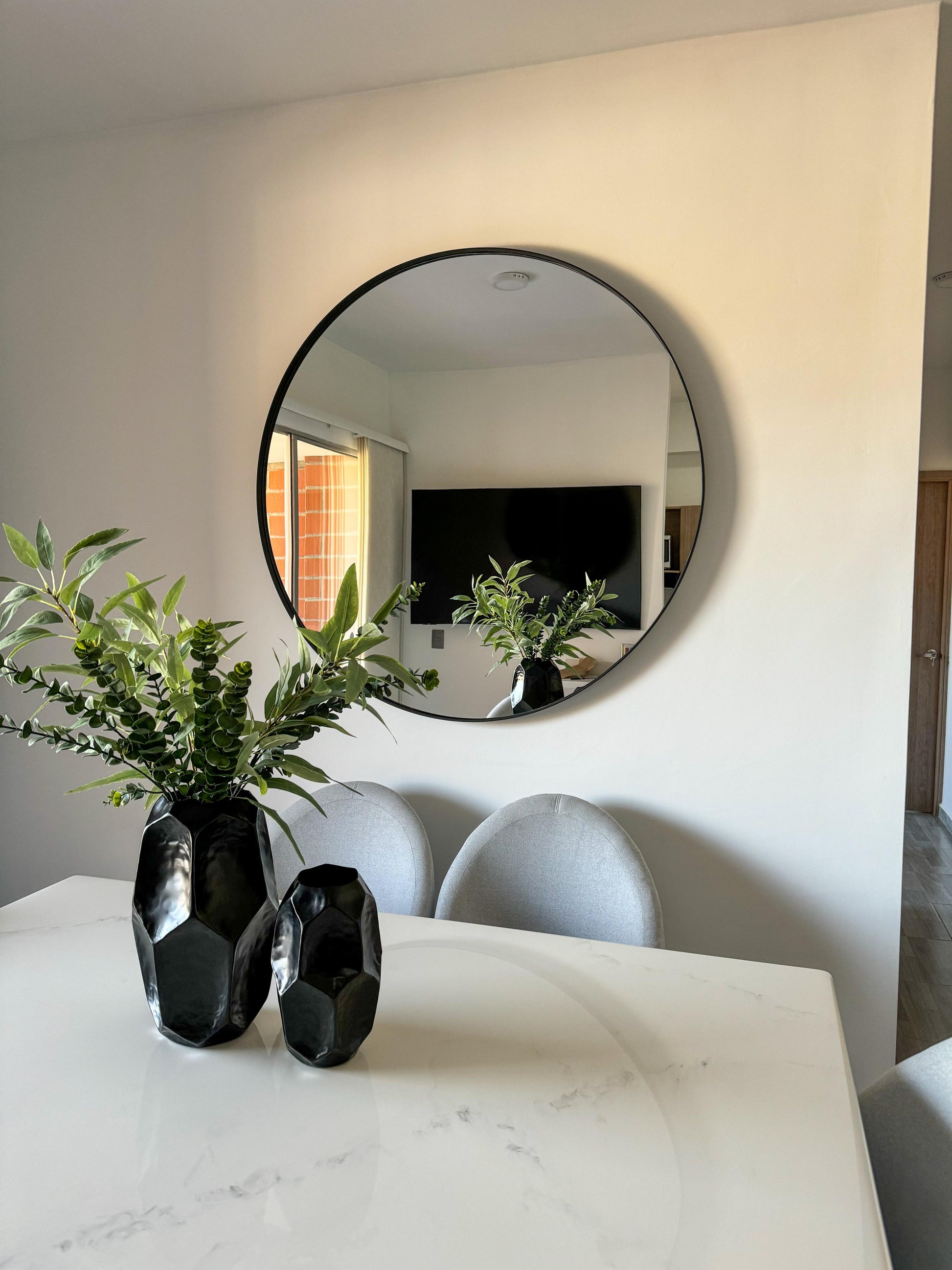 Nuestro espejo circular con marco metálico tiene el estilo industrial perfecto que buscas para tus espacios.