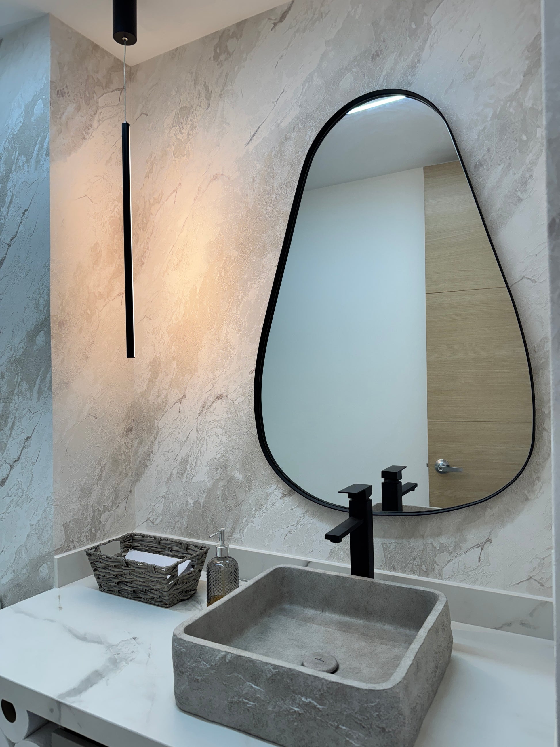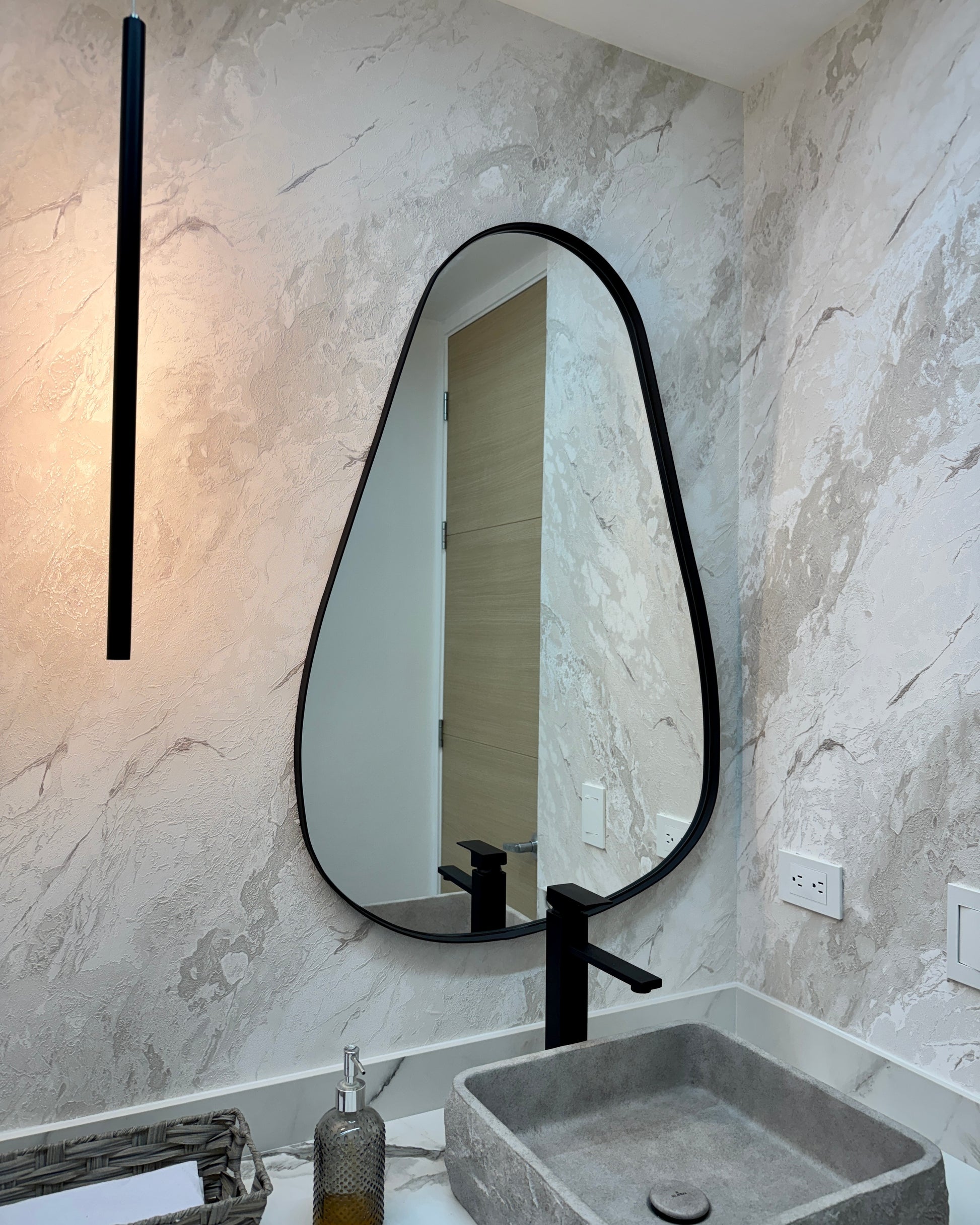 Este espejo en forma de gota con marco metálico y pintura electrostática es perfecto para crear un ambiente de alto estilo en cualquier baño. Su diseño elegante y moderno se adapta a cualquier decoración y su marco metálico garantiza su durabilidad. Añade un toque de sofisticación a tu baño con este espejo único.