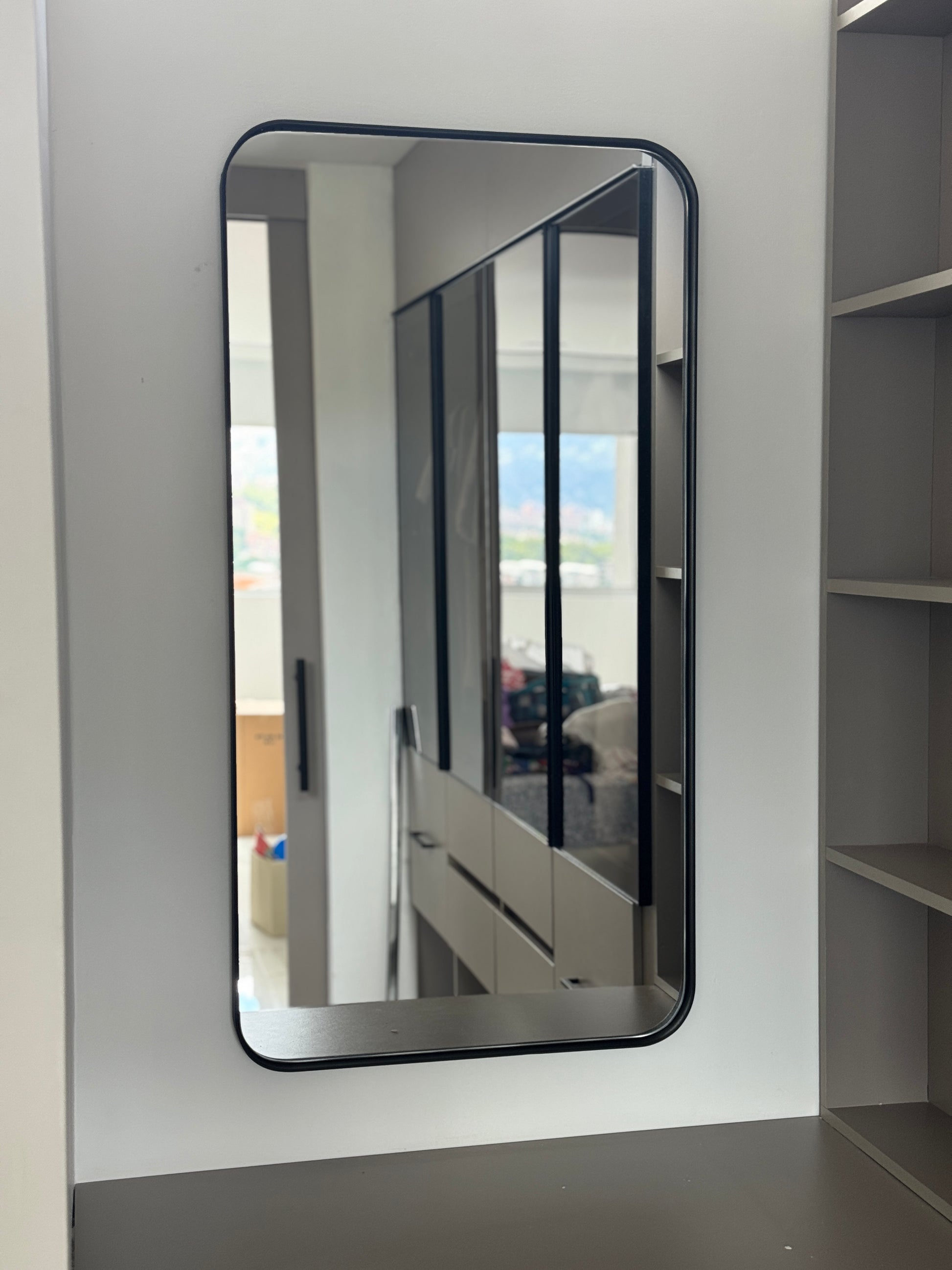 Este espejo rectangular con puntas redondas y marco metálico combina diseño moderno y durabilidad. Su estructura metálica aporta un acabado elegante y resistente, ideal para realzar cualquier espacio con un toque sofisticado y funcional. Perfecto para quienes buscan calidad y estilo en un solo producto.